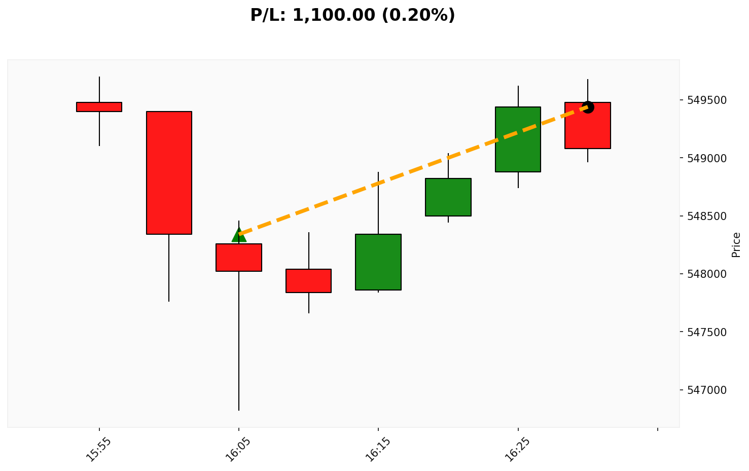 Resumo dos Trades do Dia WINZ25 — Resultado do dia: +750.00 COMPRA em WINZ25 Entrada: 148790.00 (23/10/2025 09:05)Saída: 148920.00 (23/10/2025 09:10) 💰 P/L: 130.00 (0.09%)⏳ Duração: 0.1 hora(s) VENDA em WINZ25 Entrada: 148835.00 (23/10/2025 09:43)Saída: 148215.00 (23/10/2025 12:47) 💰 P/L: 620.00 (0.42%)⏳ Duração: 3.1 hora(s)