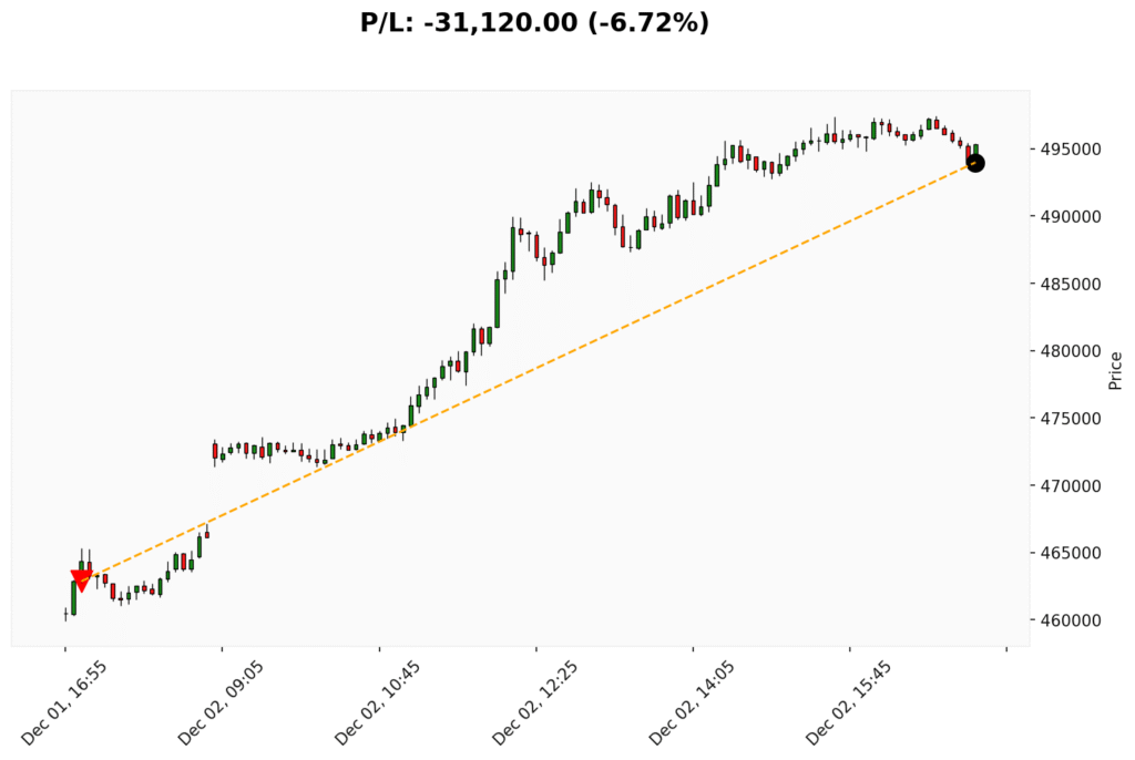 📊 Trade de VENDA em BIT. ✔ Entrada: 462860.00 (01/12/2025)✔ Saída: 493980.00 (02/12/2025)💰 P/L: -31120.00 (-6.72%) ⏳ Duração do trade:...