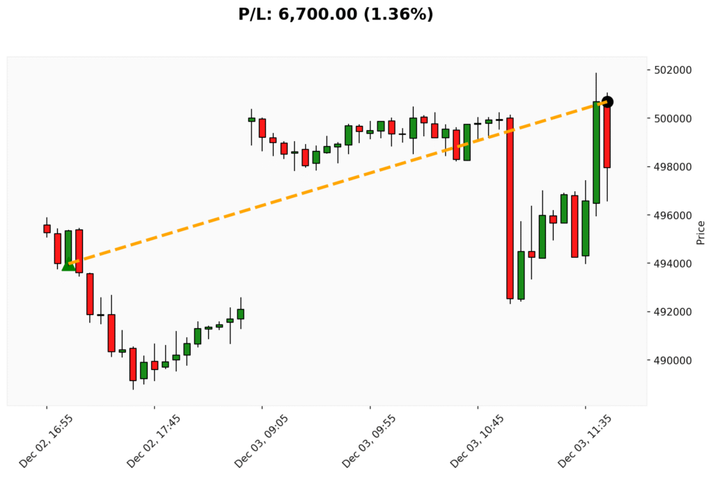 📊 Trade de COMPRA em BIT. ✔ Entrada: 493980.00 (02/12/2025)✔ Saída: 500680.00 (03/12/2025)💰 P/L: 6700.00 (1.36%) ⏳ Duração do trade:...