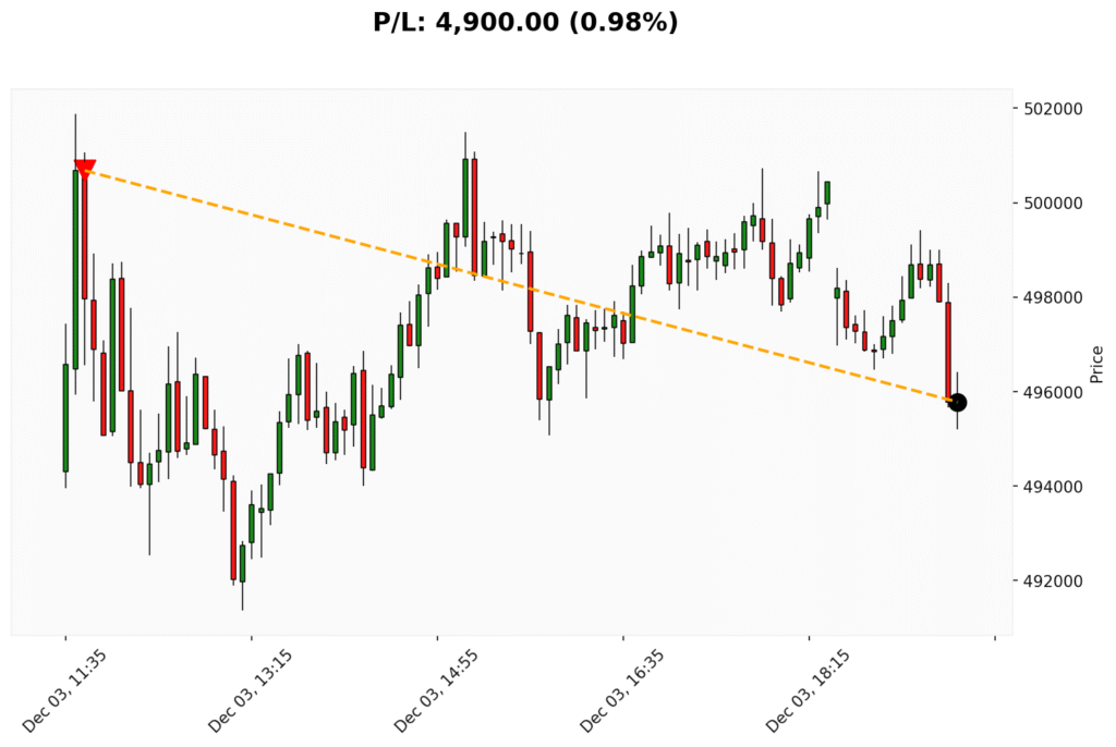 📊 Trade de VENDA em BIT. ✔ Entrada: 500680.00 (03/12/2025)✔ Saída: 495780.00 (04/12/2025)💰 P/L: 4900.00 (0.98%) ⏳ Duração do trade:...