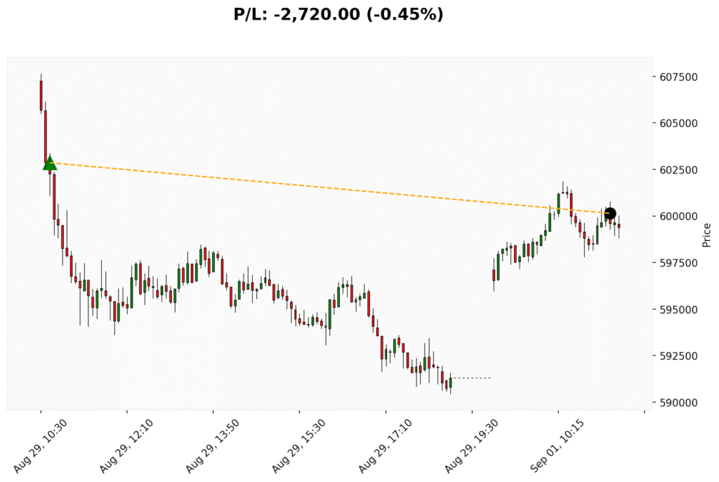 📊 Trade de COMPRA em BIT. ✔ Entrada: 602860.00 (29/08/2025)✔ Saída: 600140.00 (01/09/2025)💰 P/L: -2720.00 (-0.45%) ⏳ Duração do trade:...