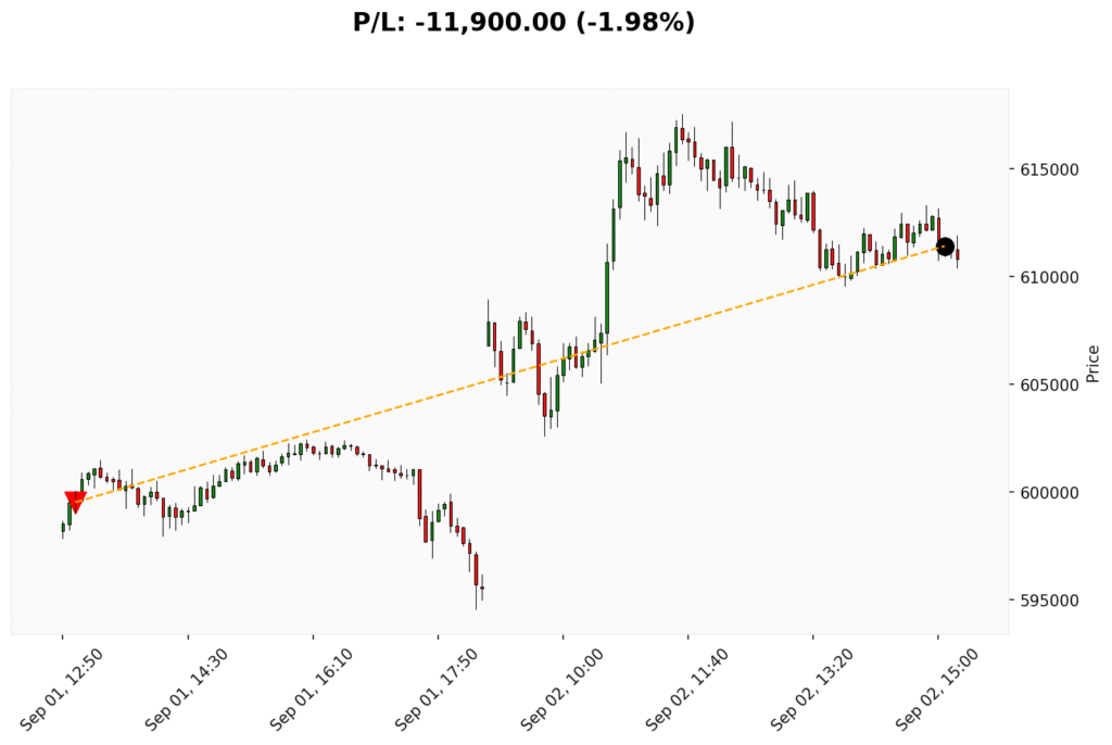 📊 Trade de COMPRA em BIT. ✔ Entrada: 598980.00 (01/09/2025)✔ Saída: 599520.00 (01/09/2025)💰 P/L: 540.00 (0.09%) ⏳ Duração do trade:...
