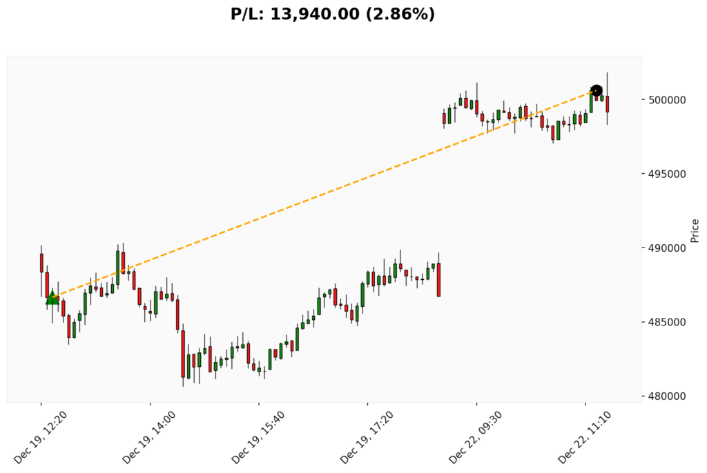 📊 Trade de COMPRA em BIT. ✔ Entrada: 486660.00 (19/12/2025)✔ Saída: 500600.00 (22/12/2025)💰 P/L: 13940.00 (2.86%) ⏳ Duração do trade:...
