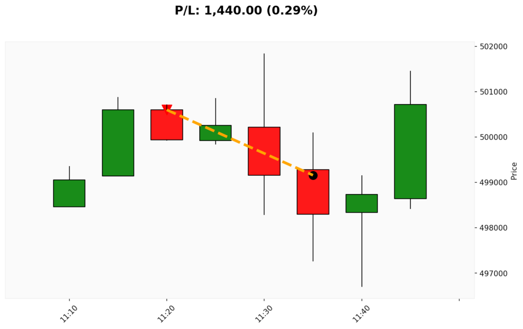 📊 Trade de VENDA em BIT. ✔ Entrada: 500600.00 (22/12/2025)✔ Saída: 499160.00 (22/12/2025)💰 P/L: 1440.00 (0.29%) ⏳ Duração do trade:...