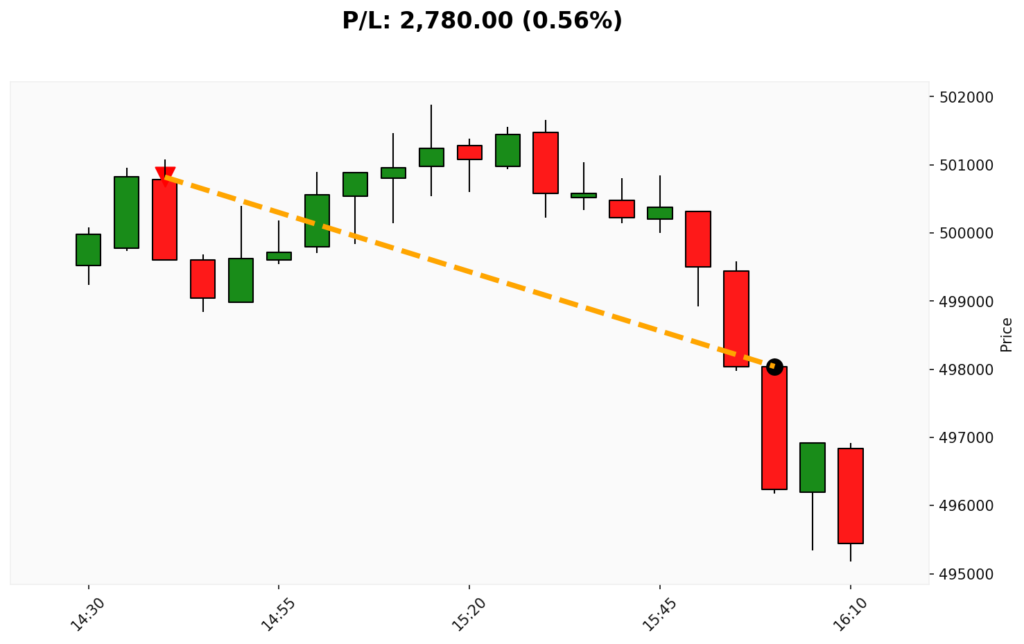 📊 Trade de VENDA em BIT. ✔ Entrada: 500820.00 (22/12/2025)✔ Saída: 498040.00 (22/12/2025)💰 P/L: 2780.00 (0.56%) ⏳ Duração do trade:...