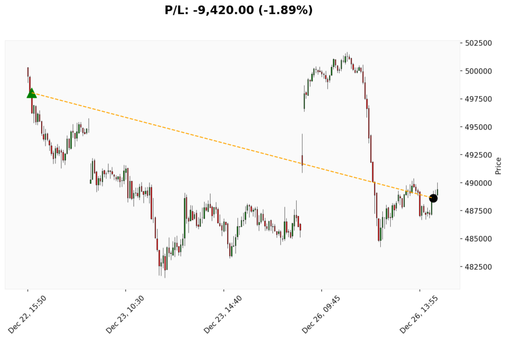 📊 Trade de COMPRA em BIT. ✔ Entrada: 498040.00 (22/12/2025)✔ Saída: 488620.00 (26/12/2025)💰 P/L: -9420.00 (-1.89%) ⏳ Duração do trade:...