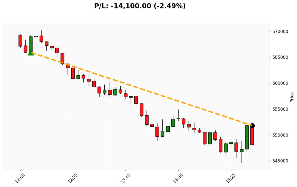 📊 Trade de COMPRA em BIT. ✔ Entrada: 565920.00 (04/11/2025)✔ Saída: 551820.00 (04/11/2025)💰 P/L: -14100.00 (-2.49%) ⏳ Duração do trade:...