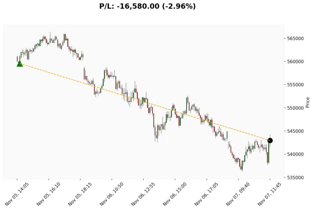 📊 Trade de COMPRA em BIT. ✔ Entrada: 559540.00 (05/11/2025)✔ Saída: 542960.00 (07/11/2025)💰 P/L: -16580.00 (-2.96%) ⏳ Duração do trade:...
