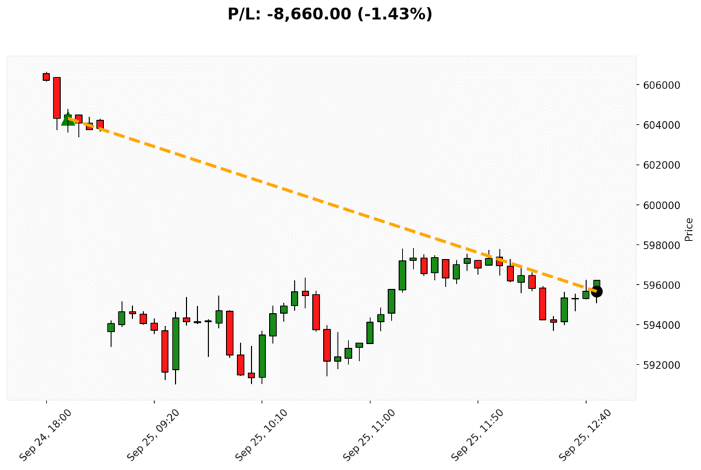 📊 Trade de COMPRA em BIT. ✔ Entrada: 604320.00 (24/09/2025)✔ Saída: 595660.00 (25/09/2025)💰 P/L: -8660.00 (-1.43%) ⏳ Duração do trade:...
