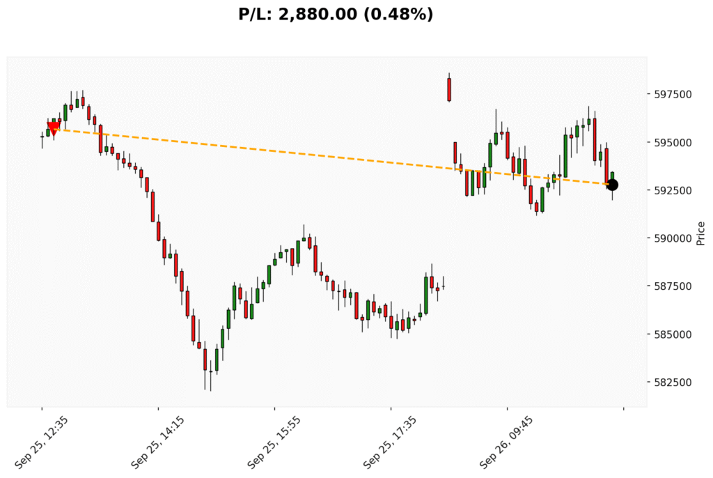 📊 Trade de VENDA em BIT. ✔ Entrada: 595660.00 (25/09/2025)✔ Saída: 592780.00 (26/09/2025)💰 P/L: 2880.00 (0.48%) ⏳ Duração do trade:...