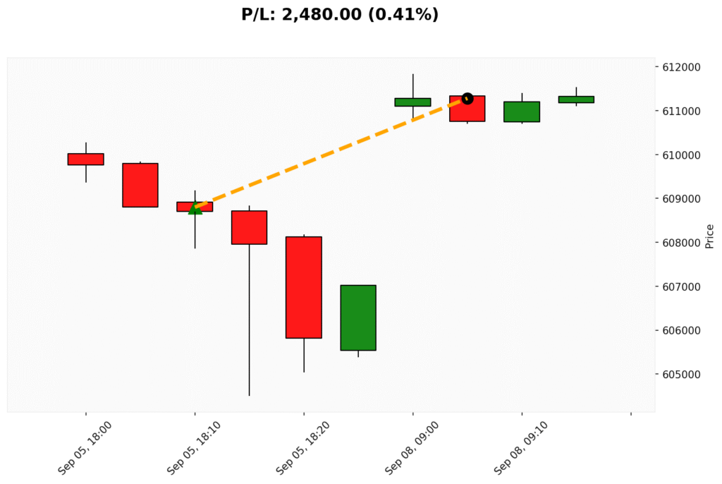 📊 Trade de COMPRA em BIT. ✔ Entrada: 608800.00 (05/09/2025)✔ Saída: 611280.00 (08/09/2025)💰 P/L: 2480.00 (0.41%) ⏳ Duração do trade:...