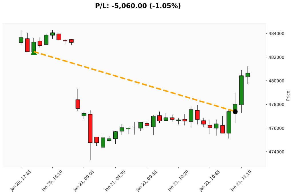 📊 Trade de COMPRA em BIT. ✔ Entrada: 482460.00 (20/01/2026)✔ Saída: 477400.00 (21/01/2026)💰 P/L: -5060.00 (-1.05%) ⏳ Duração do trade:...