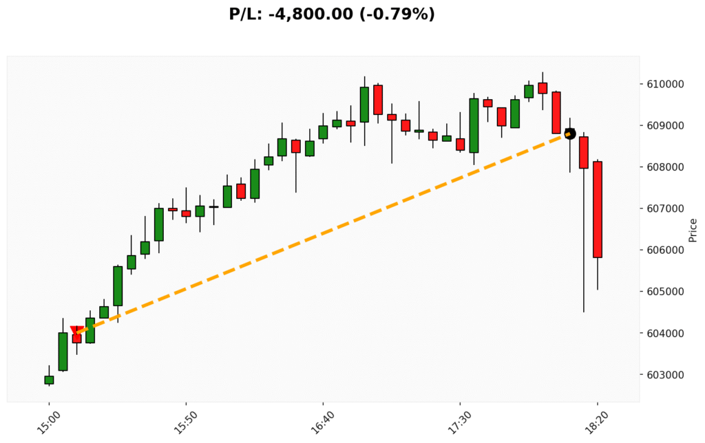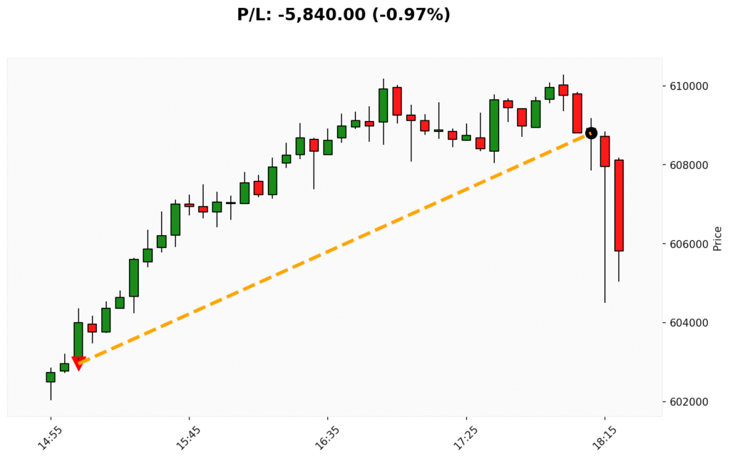 📊 Trade de VENDA em BIT. ✔ Entrada: 602960.00 (05/09/2025)✔ Saída: 608800.00 (05/09/2025)💰 P/L: -5840.00 (-0.97%) ⏳ Duração do trade:...