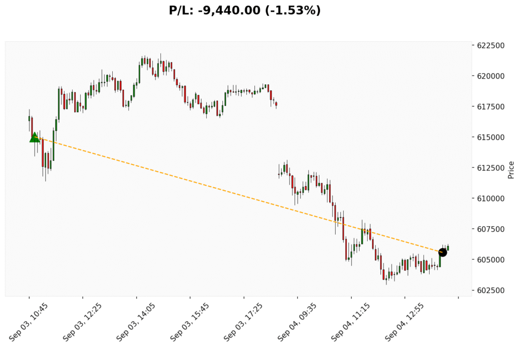 📊 Trade de COMPRA em BIT. ✔ Entrada: 615020.00 (03/09/2025)✔ Saída: 605580.00 (04/09/2025)💰 P/L: -9440.00 (-1.53%) ⏳ Duração do trade:...