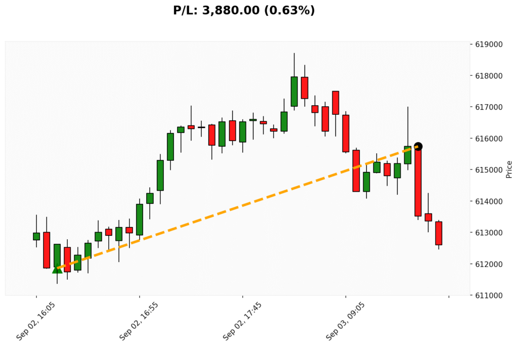 📊 Trade de COMPRA em BIT. ✔ Entrada: 611860.00 (02/09/2025)✔ Saída: 615740.00 (03/09/2025)💰 P/L: 3880.00 (0.63%) ⏳ Duração do trade:...