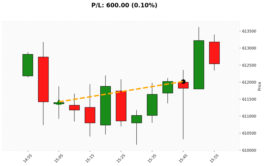📊 Trade de COMPRA em BIT. ✔ Entrada: 611420.00 (02/09/2025)✔ Saída: 612020.00 (02/09/2025)💰 P/L: 600.00 (0.10%) ⏳ Duração do trade:...