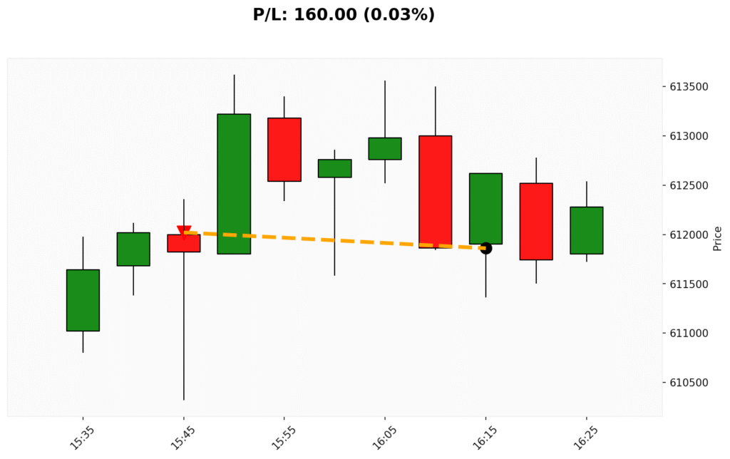 📊 Trade de VENDA em BIT. ✔ Entrada: 612020.00 (02/09/2025)✔ Saída: 611860.00 (02/09/2025)💰 P/L: 160.00 (0.03%) ⏳ Duração do trade:...