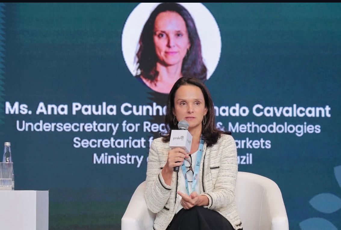 Durante o evento, a subsecretária Ana Paula esteve como palestrante em dois painéis e deu uma aula magna, abordando temas centrais para a consolidação dos mercados de carbono. As discussões passaram pelos avanços e desafios na implementação de mercados regulados em diferentes países, com destaque para aspectos institucionais, integridade ambiental e transparência, além do papel dos créditos internacionais no âmbito do Artigo 6 (dispositivo do Acordo de Paris que regula a cooperação entre países por meio da compra e venda de reduções de emissões), incluindo questões sensíveis como adicionalidade e dupla contagem.