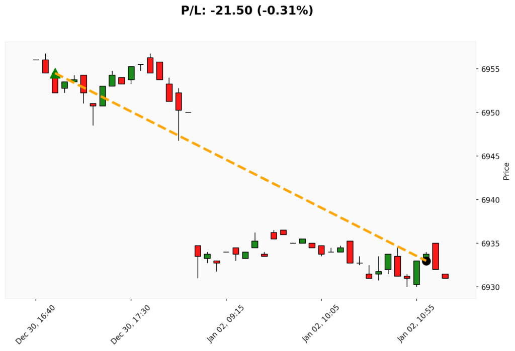 📊 Trade de COMPRA em WSP. ✔ Entrada: 6954.50 (30/12/2025)✔ Saída: 6933.00 (02/01/2026)💰 P/L: -21.50 (-0.31%) ⏳ Duração do trade:...