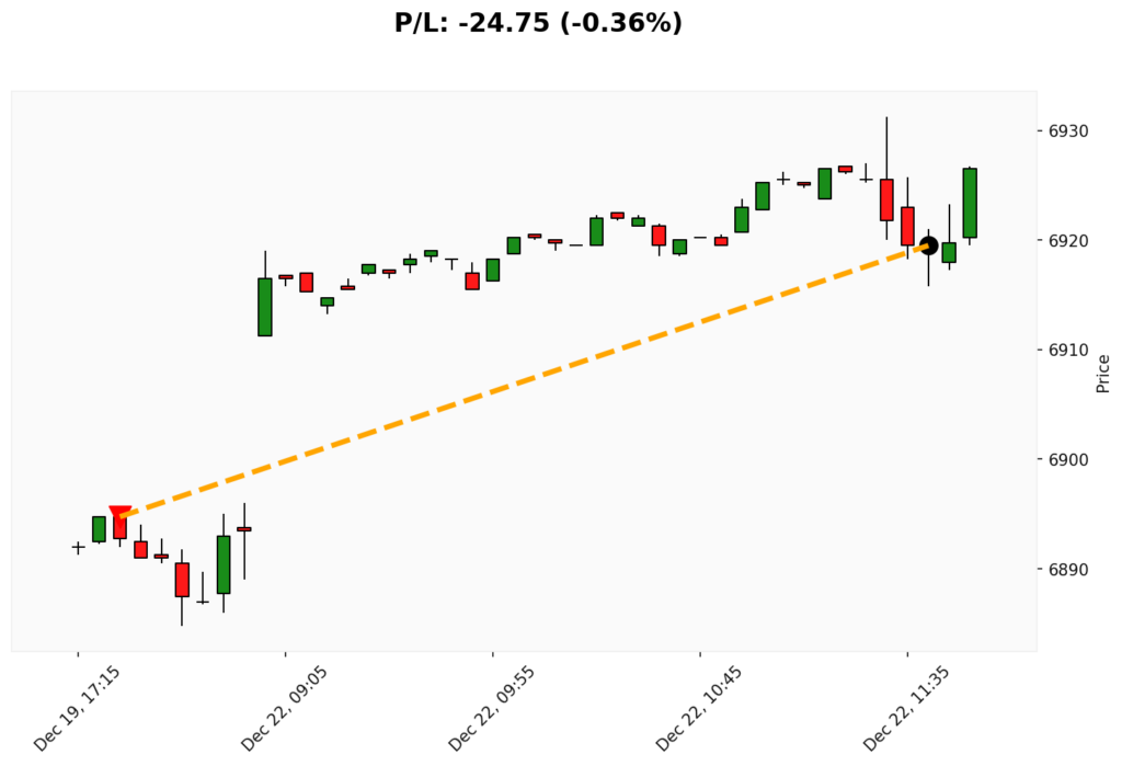📊 Trade de VENDA em WSP. ✔ Entrada: 6894.75 (19/12/2025)✔ Saída: 6919.50 (22/12/2025)💰 P/L: -24.75 (-0.36%) ⏳ Duração do trade:...