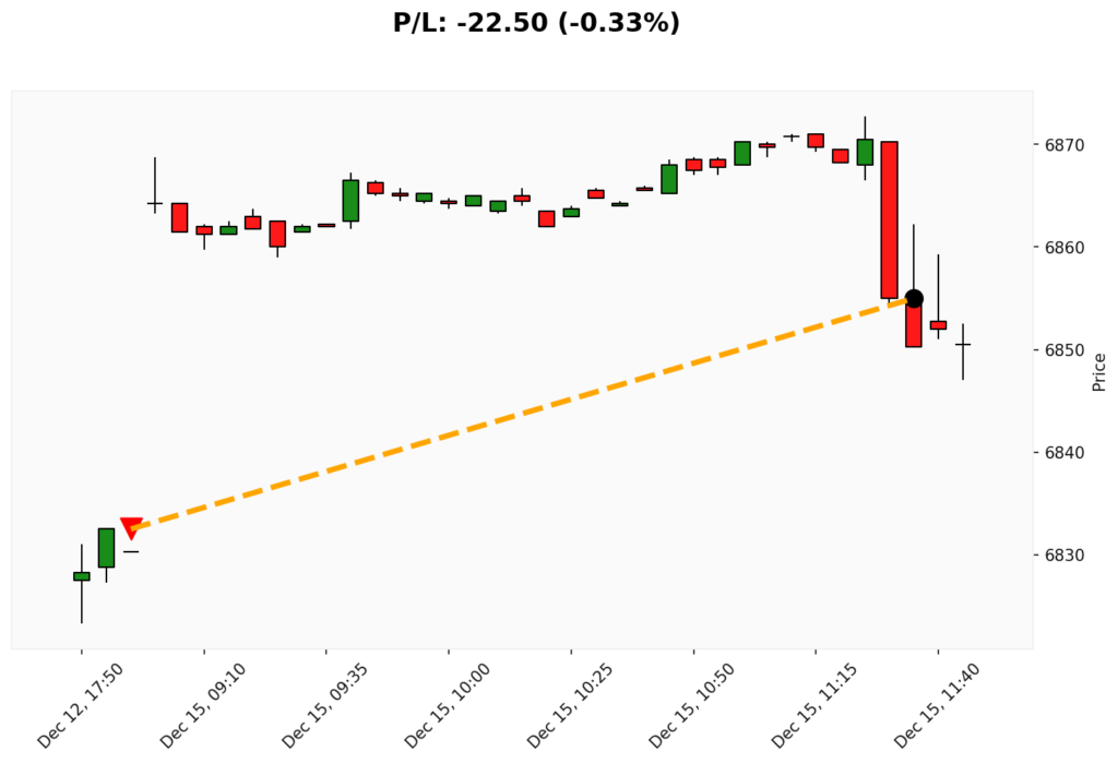 📊 Trade de VENDA em WSP. ✔ Entrada: 6832.50 (12/12/2025)✔ Saída: 6855.00 (15/12/2025)💰 P/L: -22.50 (-0.33%) ⏳ Duração do trade:...