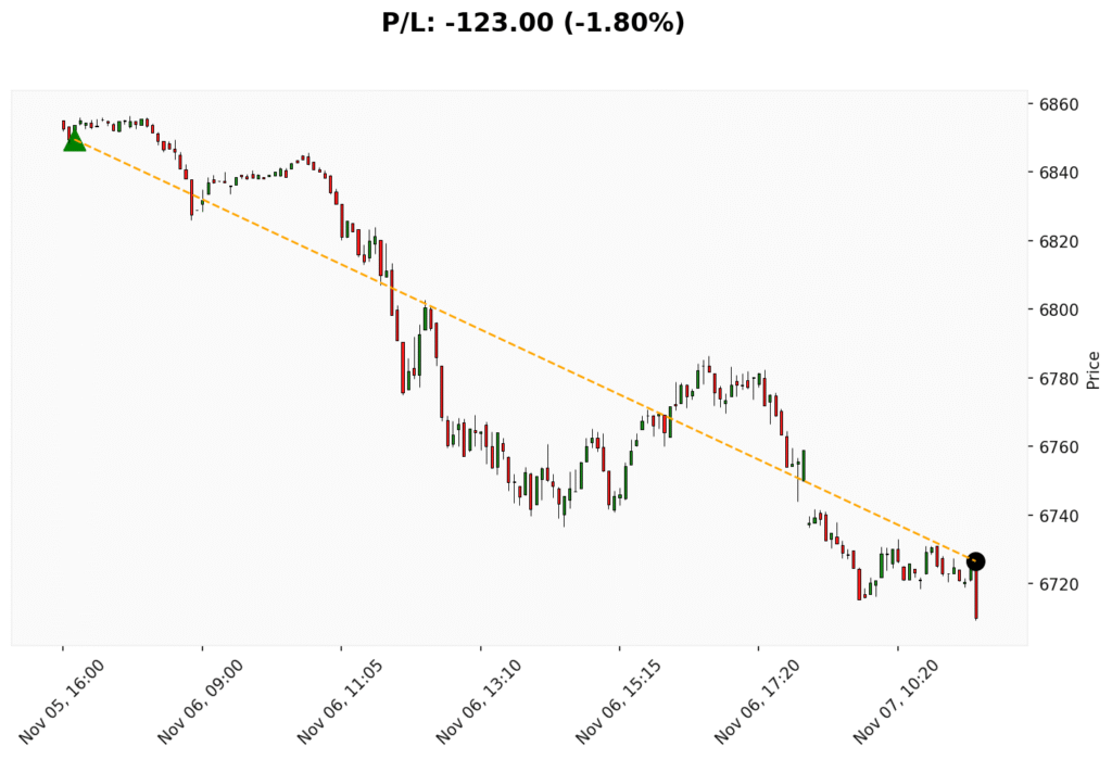 📊 Trade de COMPRA em WSP. ✔ Entrada: 6849.50 (05/11/2025)✔ Saída: 6726.50 (07/11/2025)💰 P/L: -123.00 (-1.80%) ⏳ Duração do trade:...