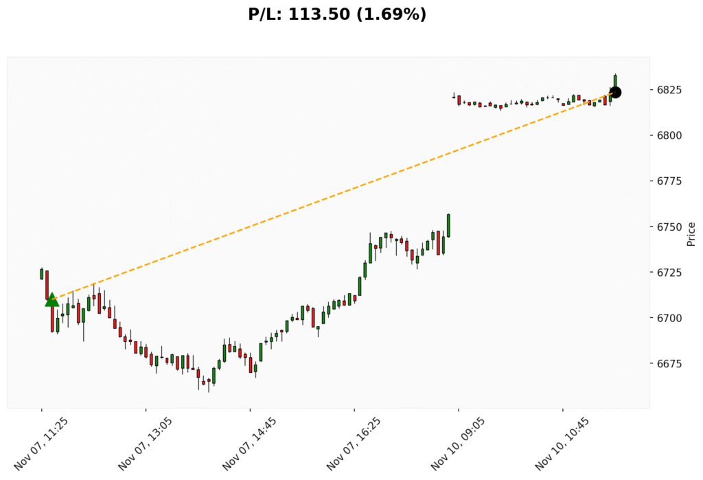 📊 Trade de COMPRA em WSP. ✔ Entrada: 6710.00 (07/11/2025)✔ Saída: 6823.50 (10/11/2025)💰 P/L: 113.50 (1.69%) ⏳ Duração do trade:...