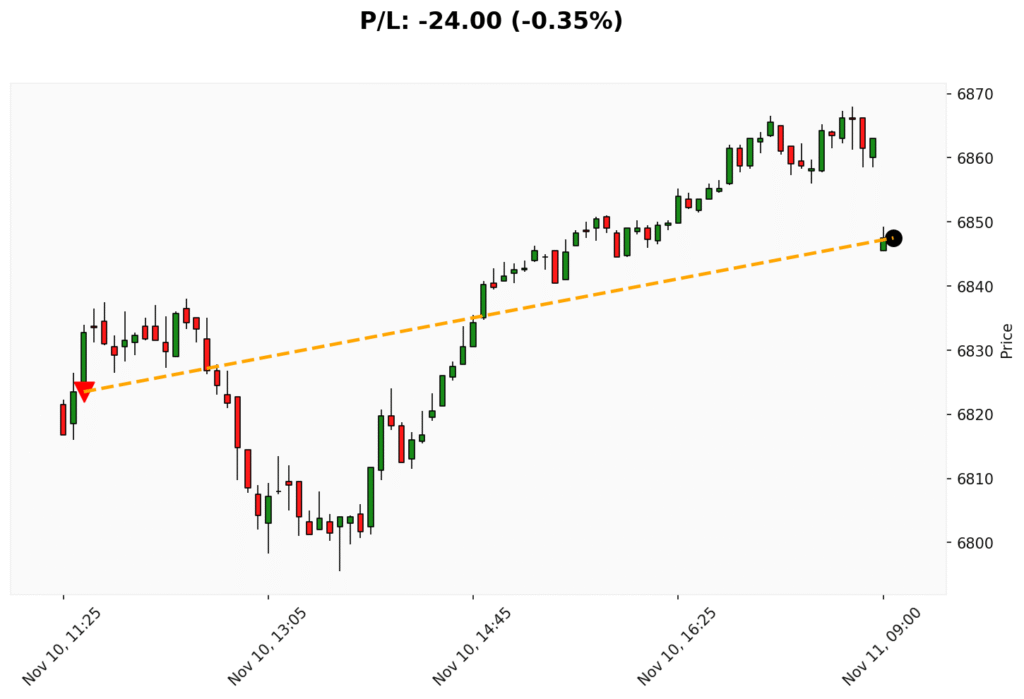📊 Trade de VENDA em WSP. ✔ Entrada: 6823.50 (10/11/2025)✔ Saída: 6847.50 (11/11/2025)💰 P/L: -24.00 (-0.35%) ⏳ Duração do trade:...