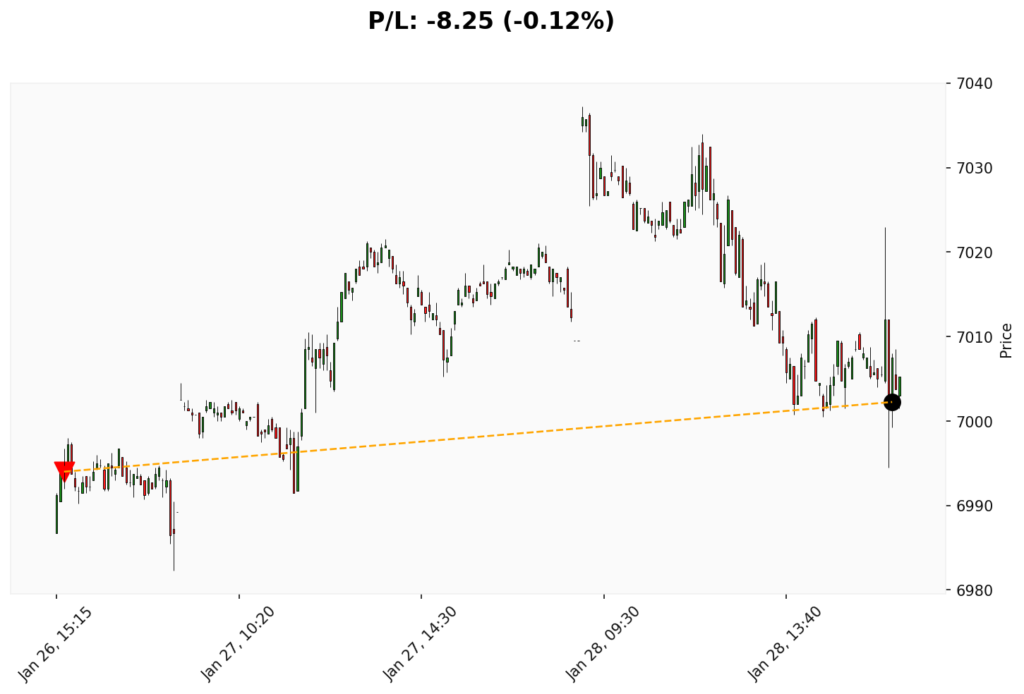 📊 Trade de VENDA em WSP.✔ Entrada: 6994.00 (26/01/2026)✔ Saída: 7002.25 (28/01/2026)💰 P/L: -8.25 (-0.12%)⏳ Duração do trade: 2 dia(s)