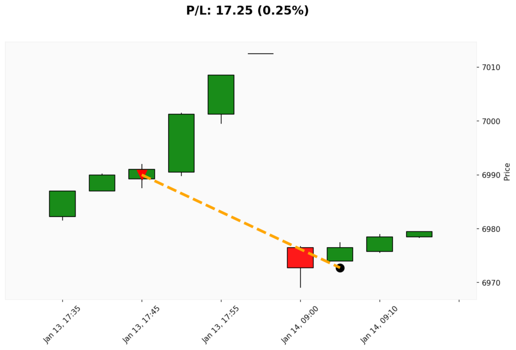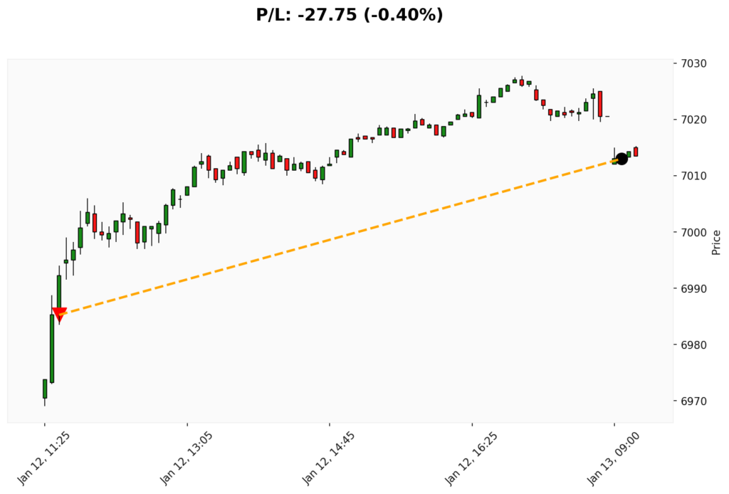 📊 Trade de COMPRA em WSP. ✔ Entrada: 7013.00 (13/01/2026)✔ Saída: 6990.00 (13/01/2026)💰 P/L: -23.00 (-0.33%) ⏳ Duração do trade:...
