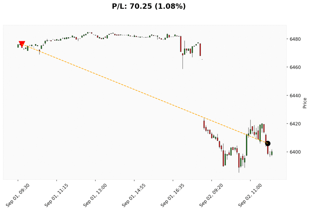 📊 Trade de VENDA em WSP. ✔ Entrada: 6476.25 (01/09/2025)✔ Saída: 6406.00 (02/09/2025)💰 P/L: 70.25 (1.08%) ⏳ Duração do trade:...