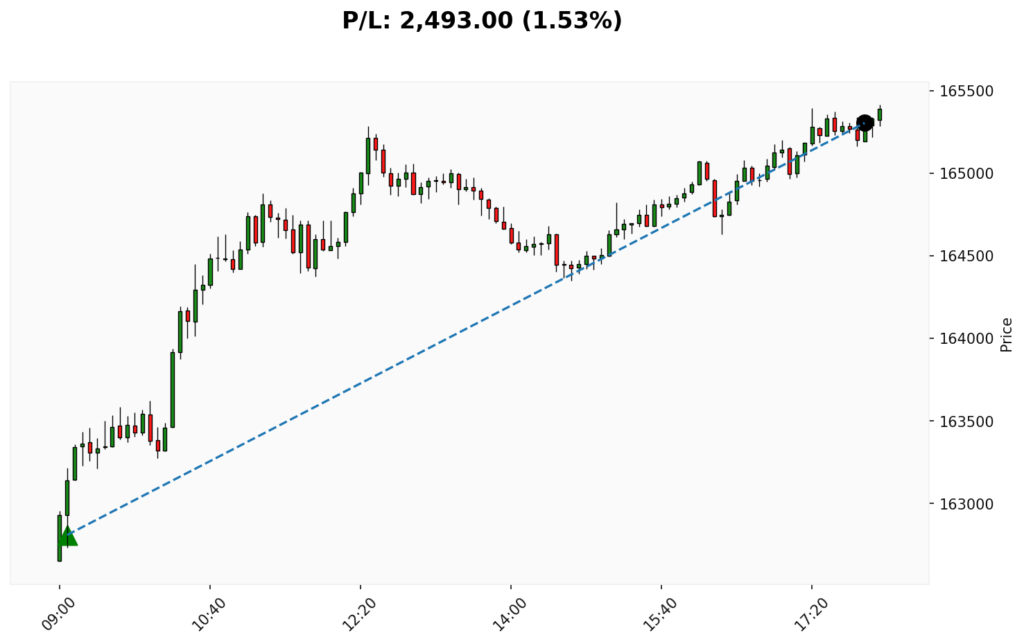 📊 📈 COMPRA em WIN. ✔ Entrada: 162810.00 (04/12/2025 09:05)✔ Saída: 165305.00 (04/12/2025 17:55)💰 P/L: 2493.00 ⏳ Duração: 8.8 hora(s)