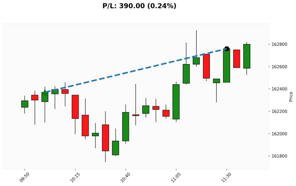 📊 📈 COMPRA em WIN. ✔ Entrada: 162370.00 (11/12/2025 10:00)✔ Saída: 162760.00 (11/12/2025 11:30)💰 P/L: 390.00 ⏳ Duração: 1.5 hora(s)