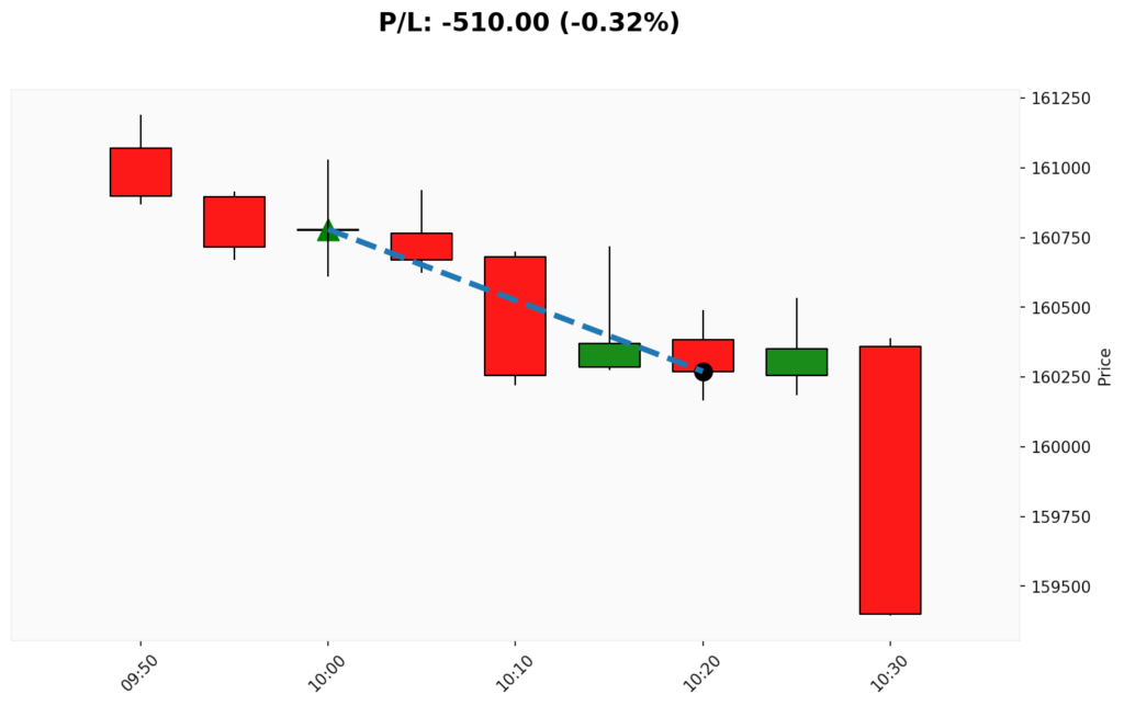 📊 📈 COMPRA em WIN. ✔ Entrada: 160780.00 (09/12/2025 10:00)✔ Saída: 160270.00 (09/12/2025 10:20)💰 P/L: -510.00 ⏳ Duração: 0.3 hora(s)