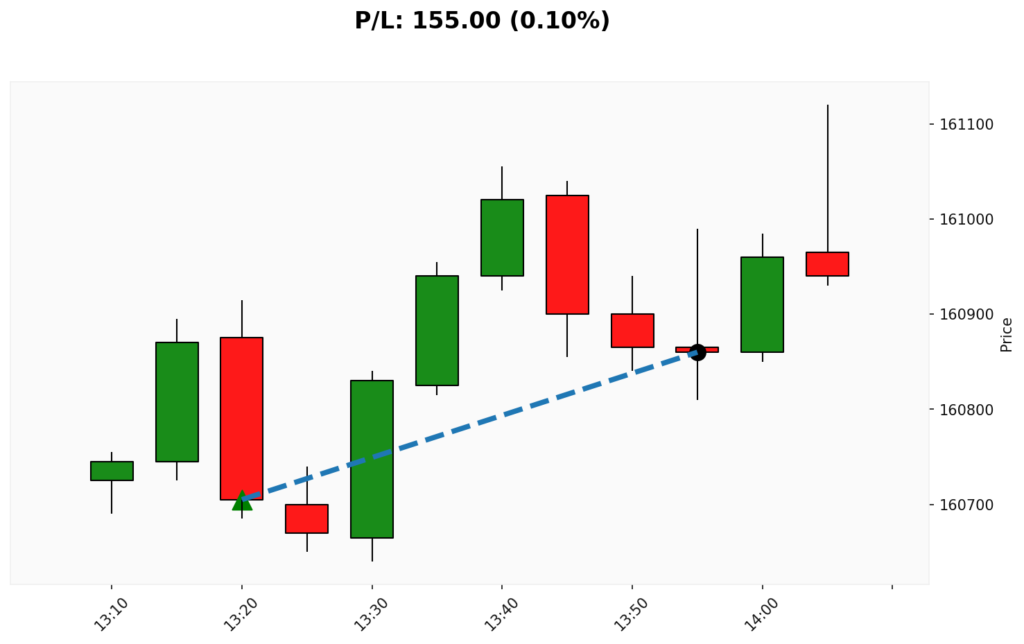 📊 📈 COMPRA em WIN. ✔ Entrada: 160705.00 (02/12/2025 13:20)✔ Saída: 160860.00 (02/12/2025 13:55)💰 P/L: 155.00 ⏳ Duração: 0.6 hora(s)