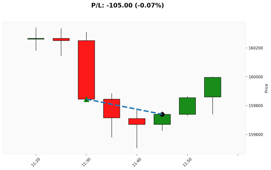 📊 📈 COMPRA em WIN. ✔ Entrada: 159845.00 (28/11/2025 11:30)✔ Saída: 159740.00 (28/11/2025 11:45)💰 P/L: -105.00 ⏳ Duração: 0.2 hora(s)