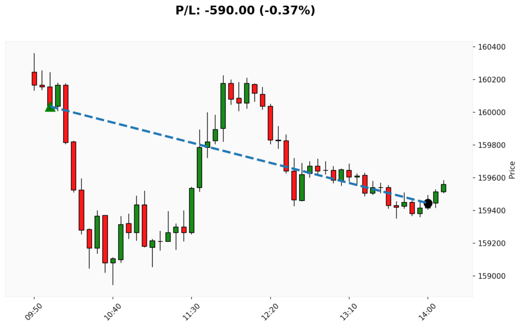 📊 📈 COMPRA em WIN. ✔ Entrada: 160035.00 (01/12/2025 10:00)✔ Saída: 159445.00 (01/12/2025 14:00)💰 P/L: -590.00 ⏳ Duração: 4.0 hora(s)
