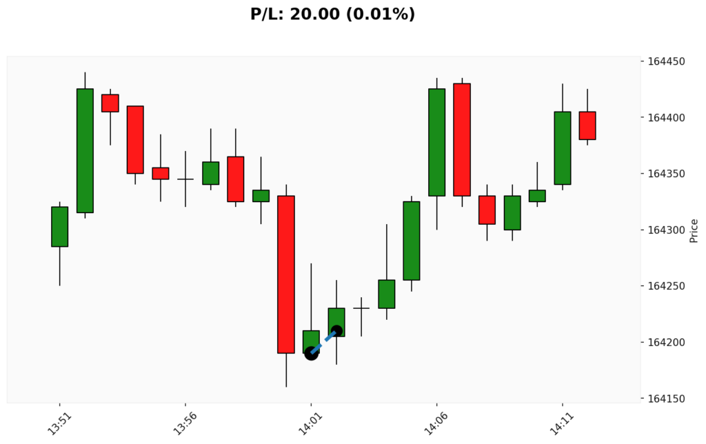 📊 📈 COMPRA em WIN. ✔ Entrada: 164190.00 (30/12/2025 14:01)✔ Saída: 164210.00 (30/12/2025 14:02)💰 P/L: 20.00 ⏳ Duração: 0.0 hora(s)
