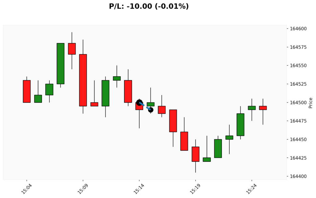📊 📈 COMPRA em WIN. ✔ Entrada: 164500.00 (30/12/2025 15:14)✔ Saída: 164490.00 (30/12/2025 15:15)💰 P/L: -10.00 ⏳ Duração: 0.0 hora(s)