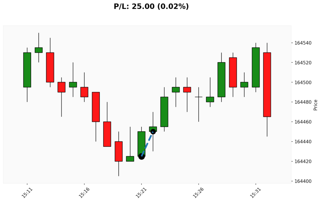 📊 📈 COMPRA em WIN. ✔ Entrada: 164425.00 (30/12/2025 15:21)✔ Saída: 164450.00 (30/12/2025 15:22)💰 P/L: 25.00 ⏳ Duração: 0.0 hora(s)