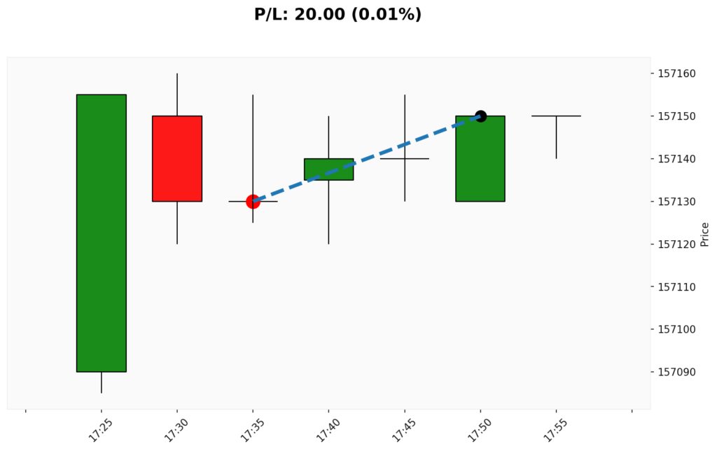 📊 📈 COMPRA em WIN. ✔ Entrada: 157130.00 (17/12/2025 17:35)✔ Saída: 157150.00 (17/12/2025 17:50)💰 P/L: 20.00 ⏳ Duração: 0.2 hora(s)