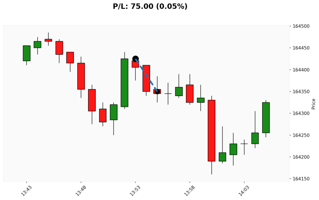 📊 📉 VENDA em WIN.✔ Entrada: 164425.00 (30/12/2025 13:53)✔ Saída: 164350.00 (30/12/2025 13:55)💰 P/L: 75.00⏳ Duração: 0.0 hora(s)